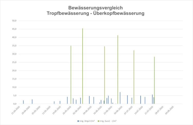 Zu sehen ist, dass mit der Tropfbewässerung der Wasserverbrauch um rund 52 Prozent gesenkt werden konnte.