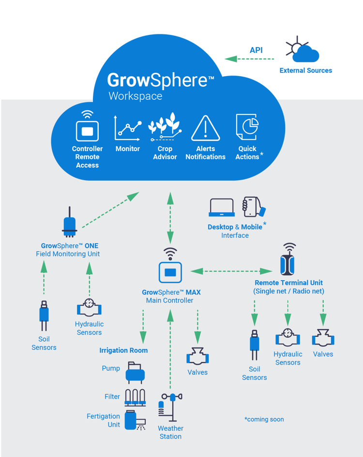 Deshalb haben wir GrowSphere™ entwickelt, das erste Betriebssystem (OS) für die Präzisionsbewässerung. Ein einfaches, intuitives und visuelles Tool, das Ihnen hilft, Ihre Bewässerungspläne mit größerer Zuverlässigkeit, Transparenz und weniger Aufwand zu planen und auszuführen.